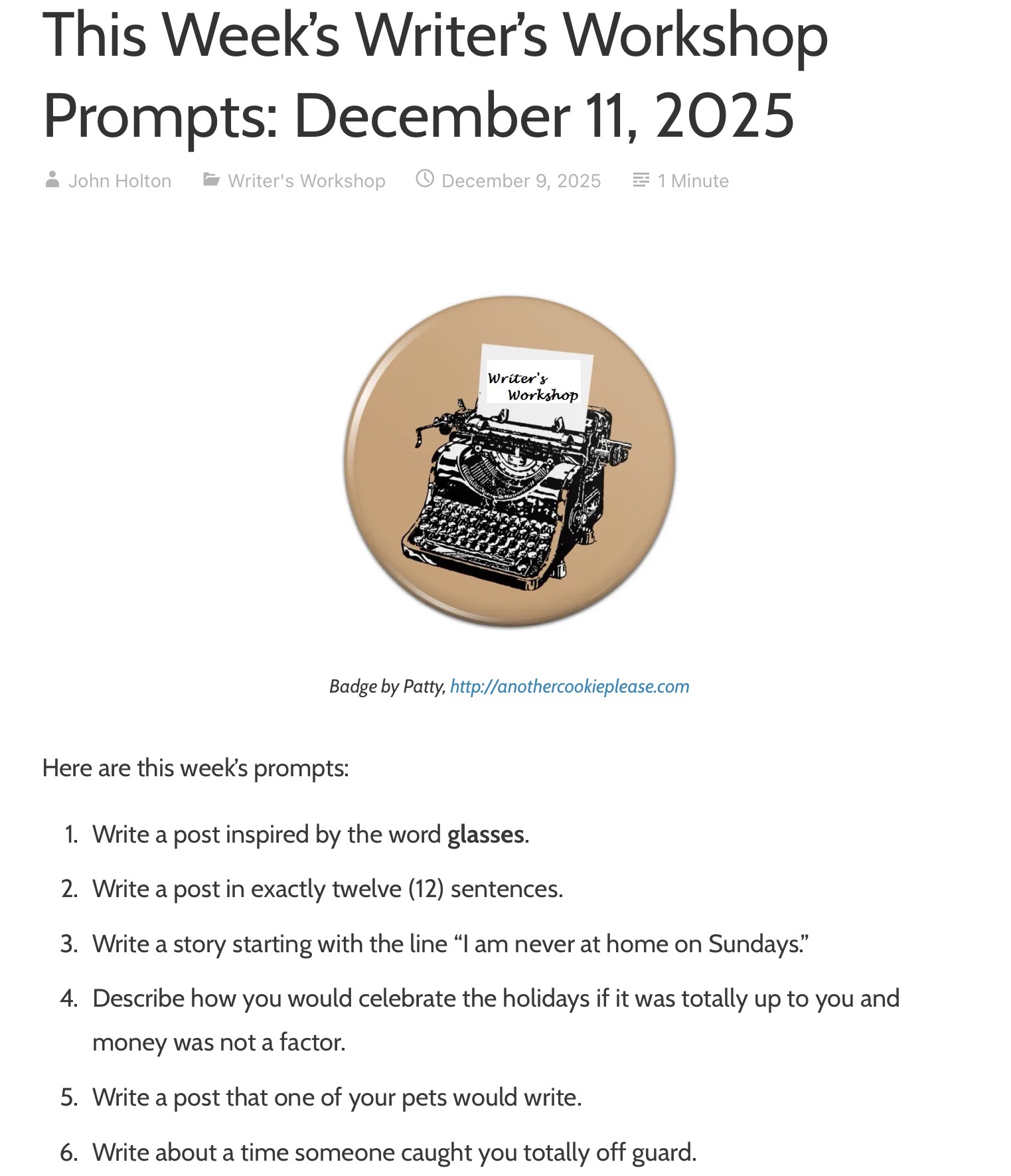 This Week’s Writer’s Workshop Prompts: December 11, 2025