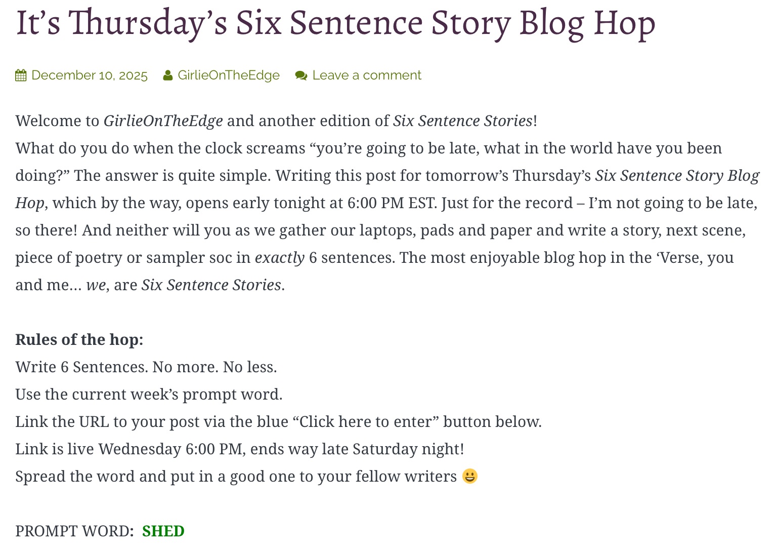 Six Sentence Story