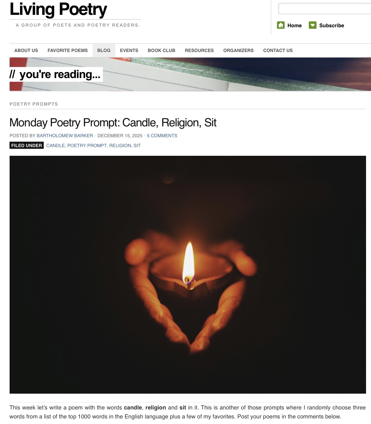 Monday Poetry Prompt: Candle, Religion, Sit