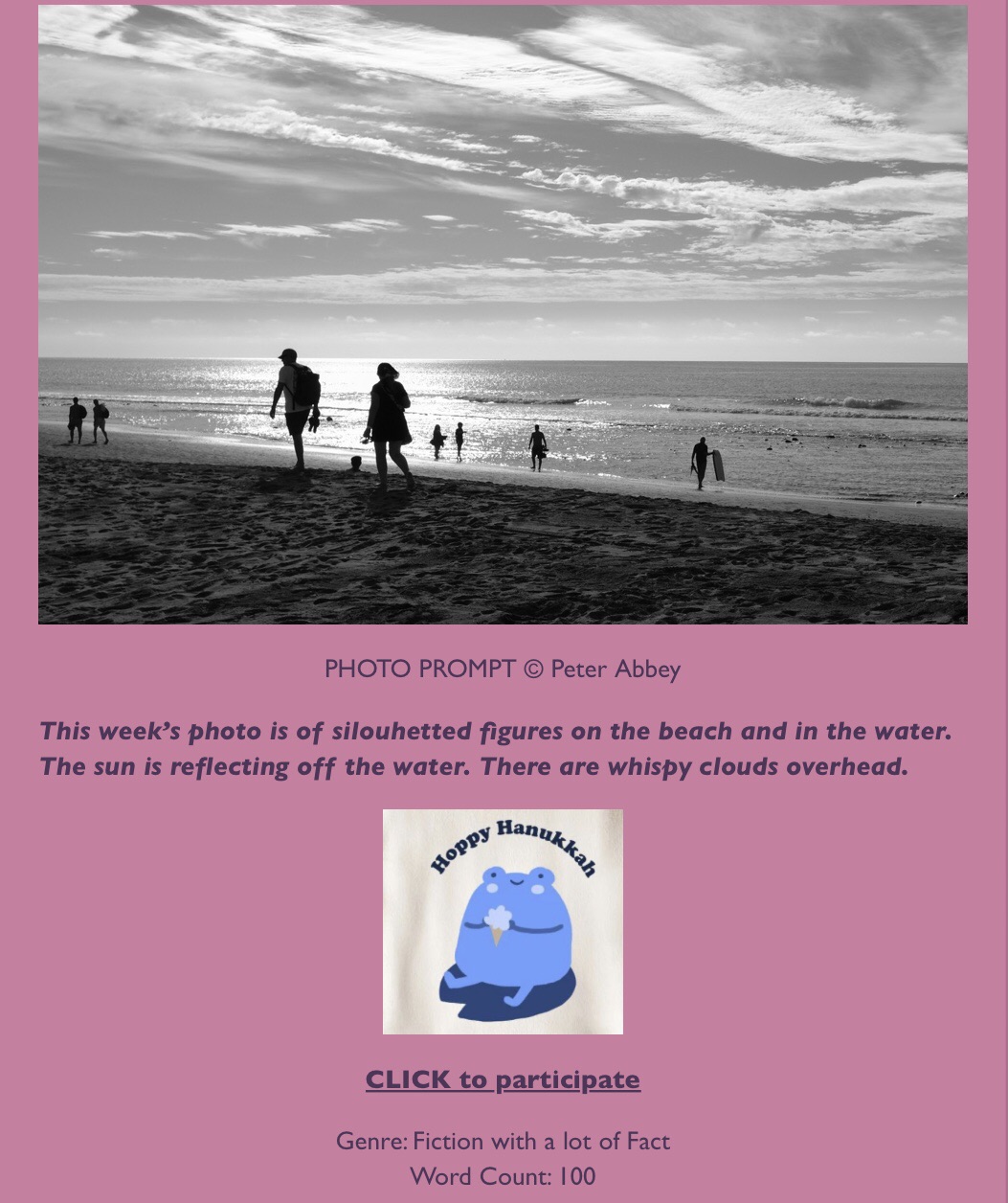 The sun was just beginning to set and the waves turned colder. A day at the beach was the usual destination on a Sunday. A picnic lunch, and lots of sandy castles were built and taken away in the surf. Joe always brought his radio with him in case of any weather alerts in the area. This day had been fun until a news bulletin reported on the little device. A crazed man was brandishing a hopefully toy gun and was nearby. Joe listened to hear the man was arrested, but gathered his family, packed up and sadly went home.