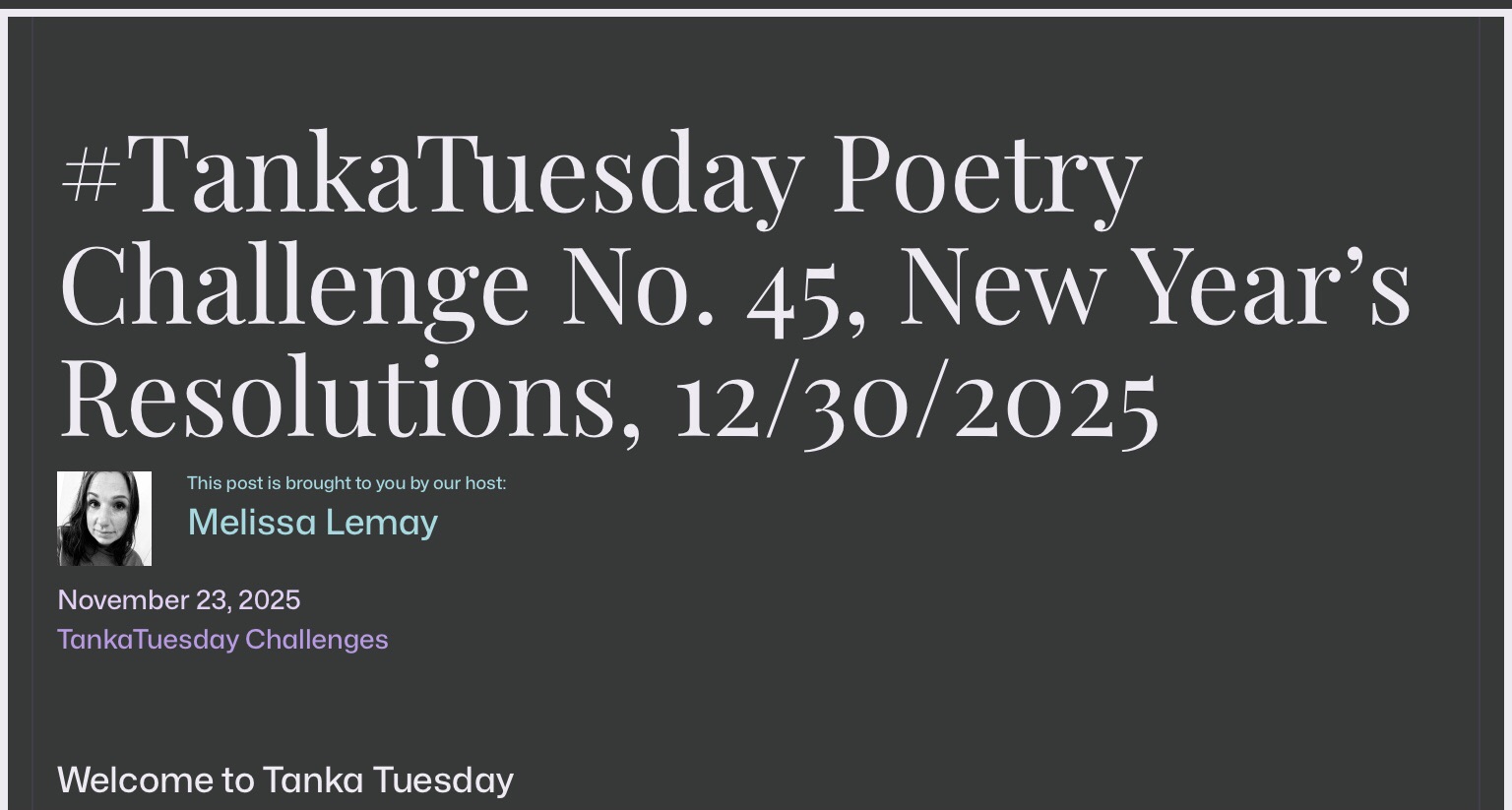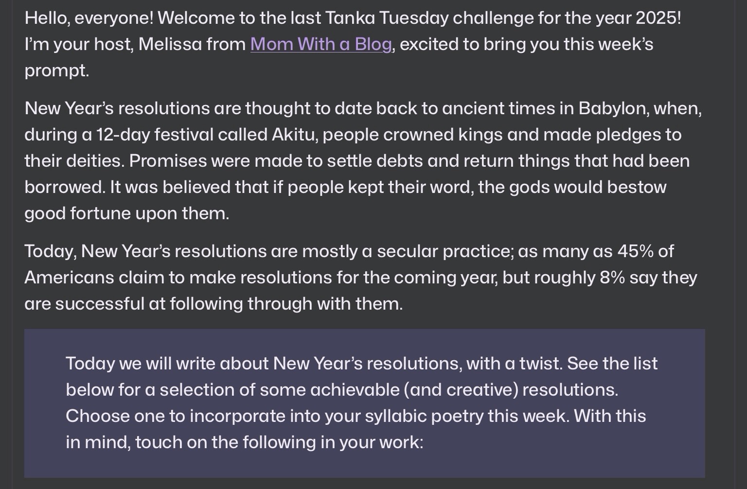 #TankaTuesday Poetry Challenge No. 45, New Year’s Resolutions, 12/30/2025