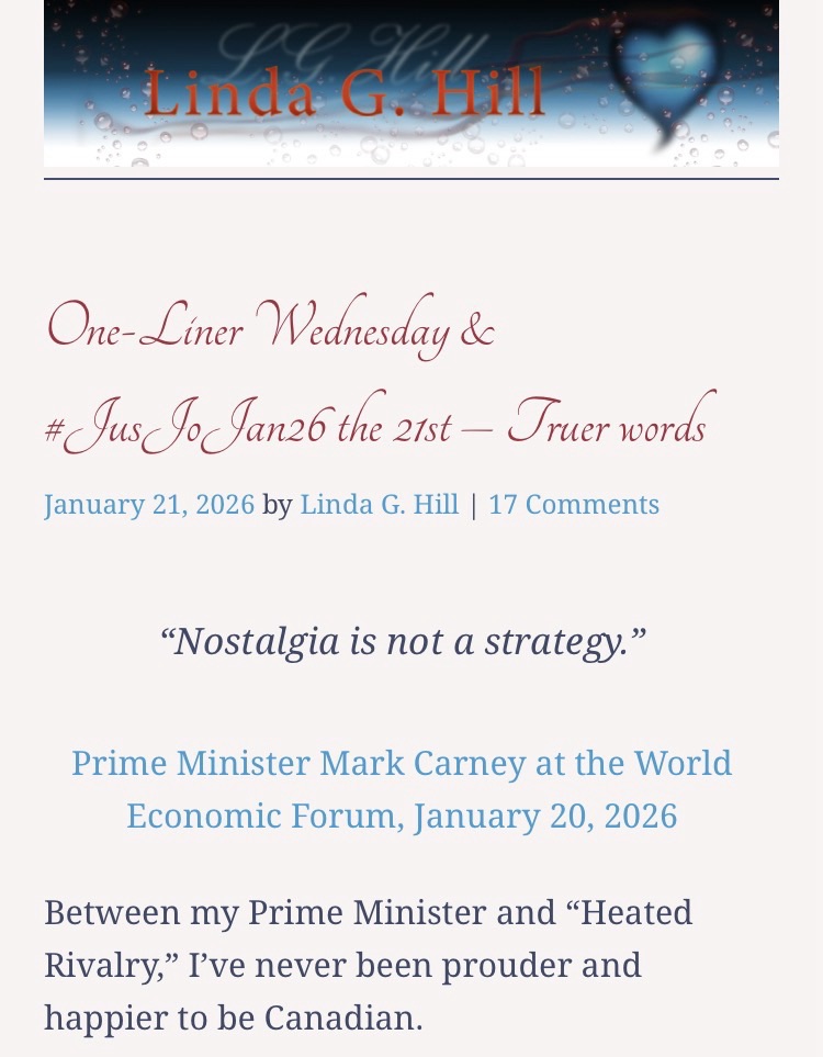 JuJoJan 21 + One Liner Wednesday January 21, 2026 by rugby843, posted in Uncategorized *** One-Liner Wednesday & #JusJoJan26 the 21st – Truer words Email a link to a friend (Opens in new window) Email Like Loading... Related