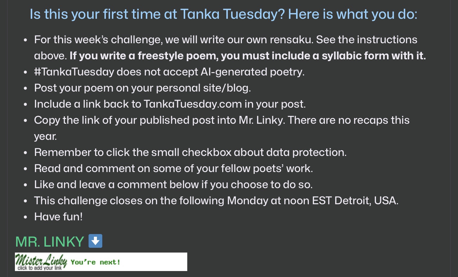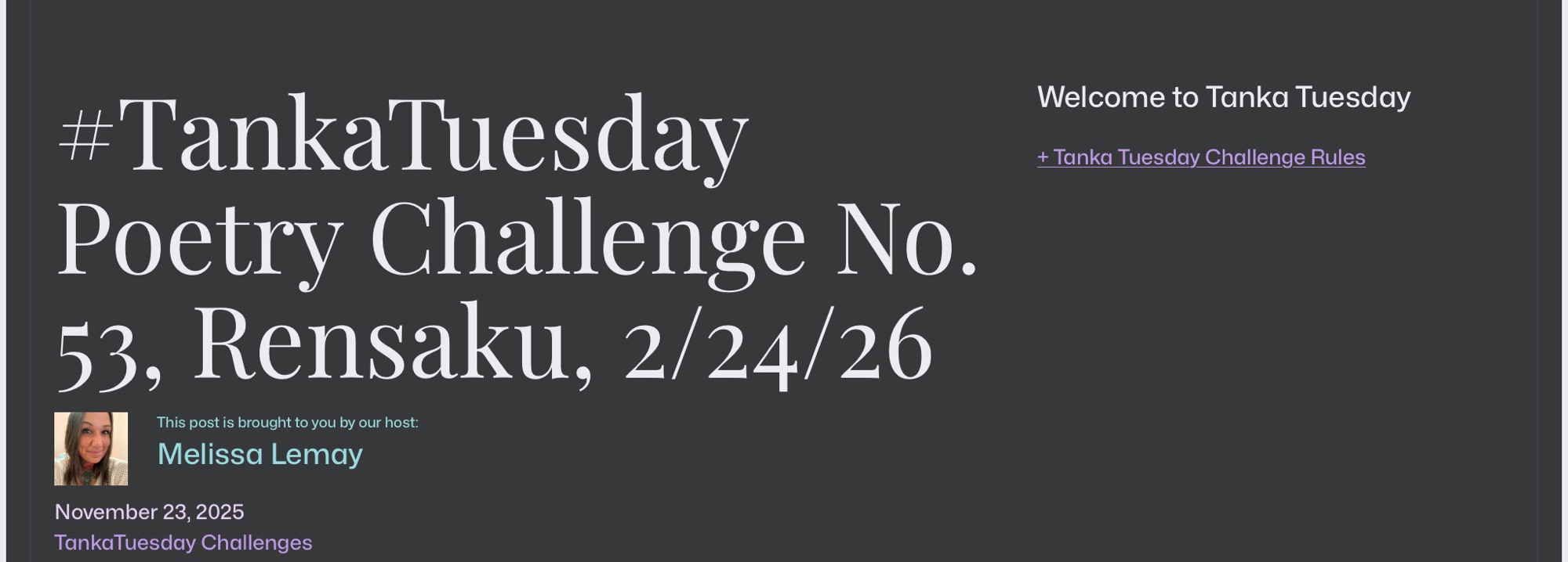 #TankaTuesday Poetry Challenge No. 53, Rensaku, 2/24/26