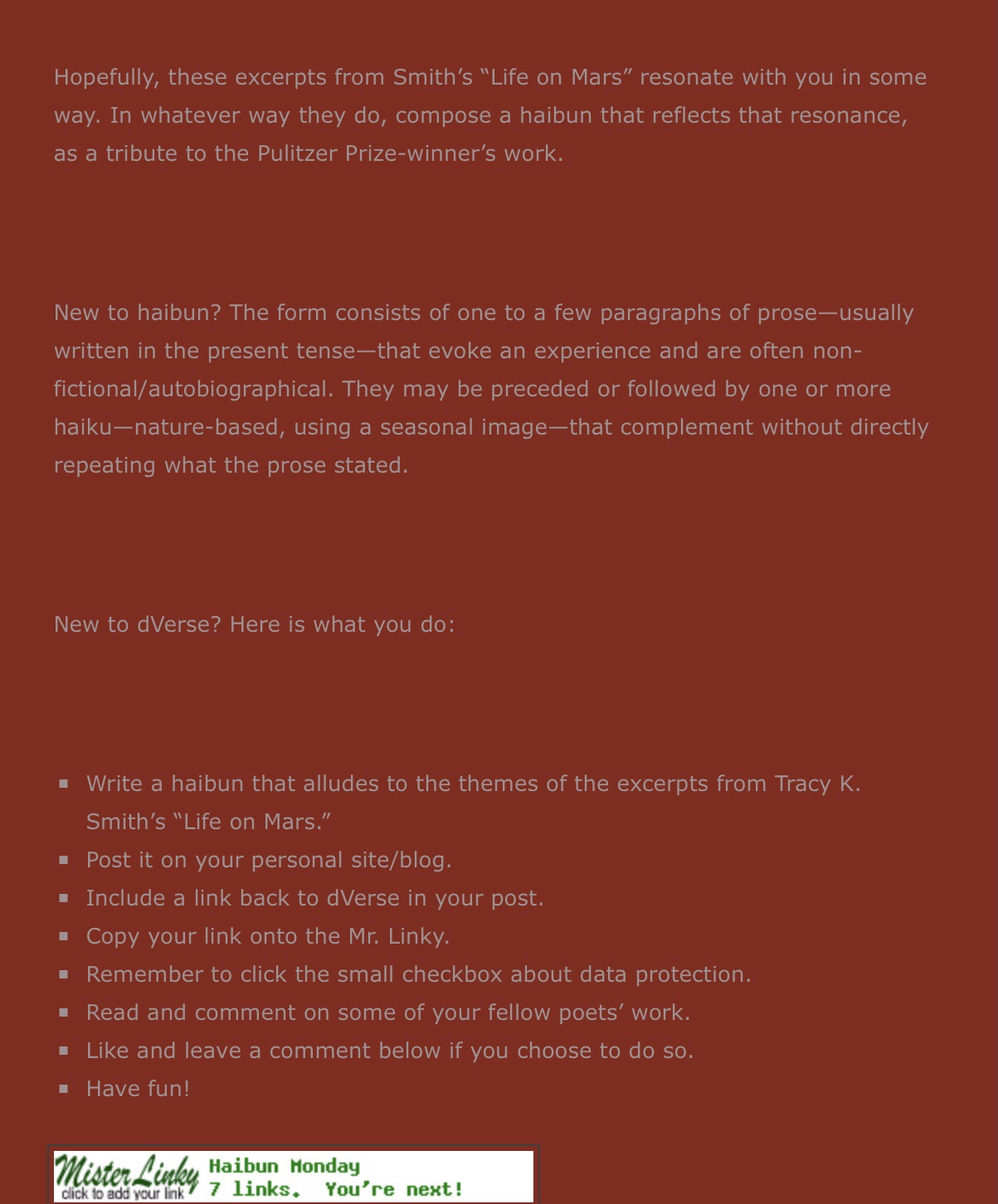 Haibun Monday 3-2-26: A “Life on Mars” Tribute