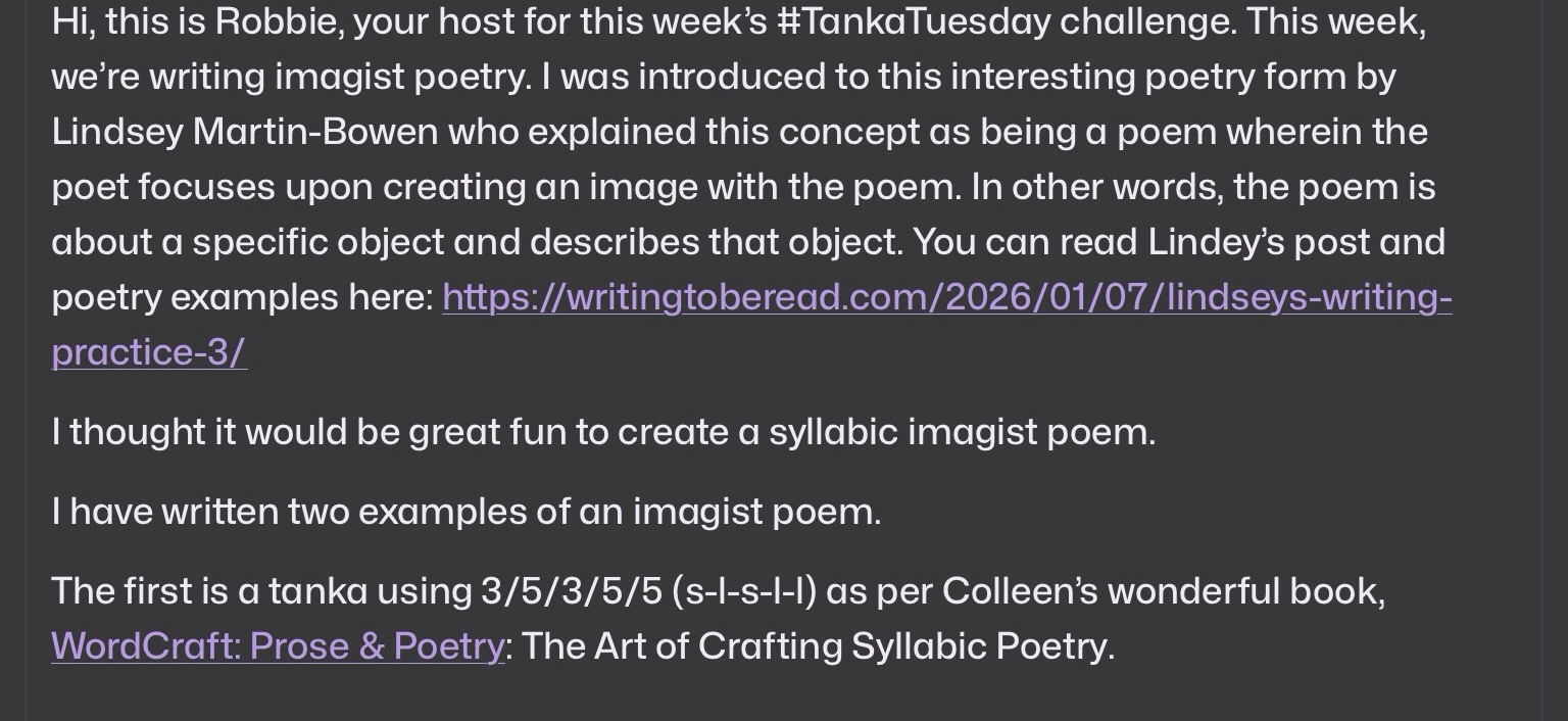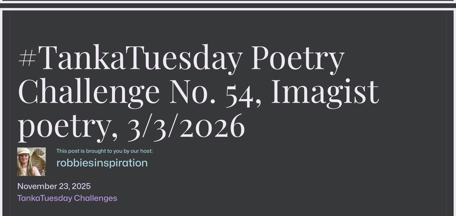#TankaTuesday Poetry Challenge No. 54, Imagist poetry, 3/3/2026