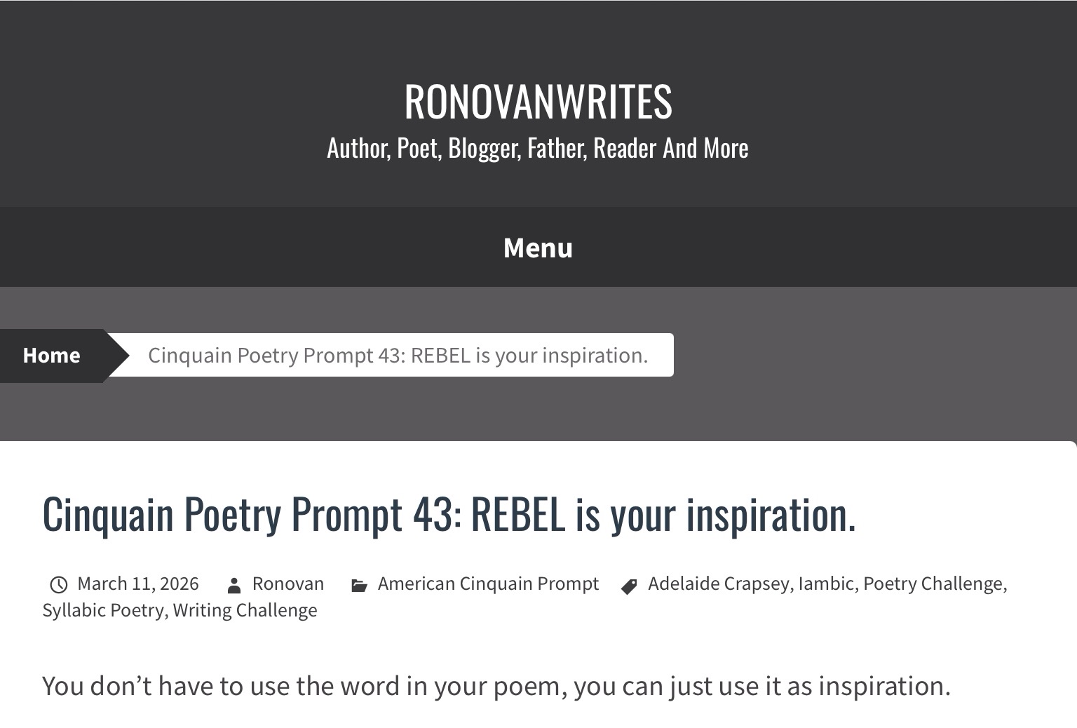 Cinquain Poetry Prompt 43: REBEL is your inspiration.