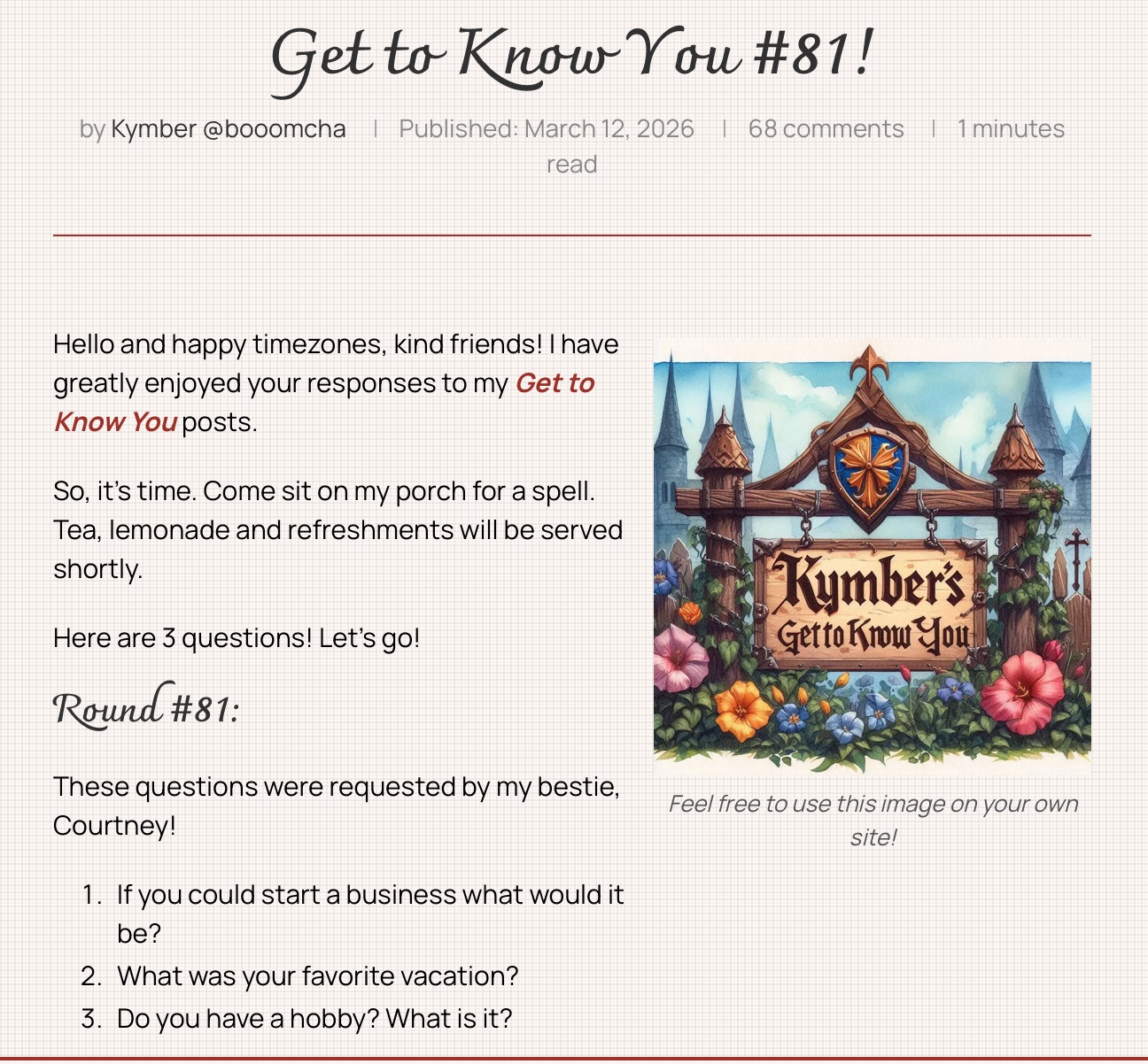 Getting to Know You March 13, 2026 by rugby843, posted in Uncategorized *** Clothing business Maui Blogging/writing *** https://booomcha.com/ Email a link to a friend (Opens in new window) Email Like Loading... Related