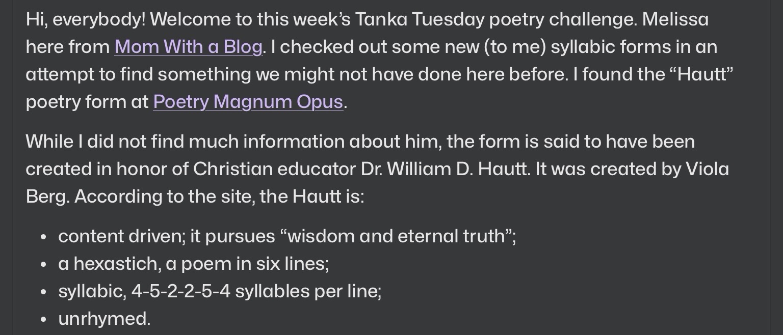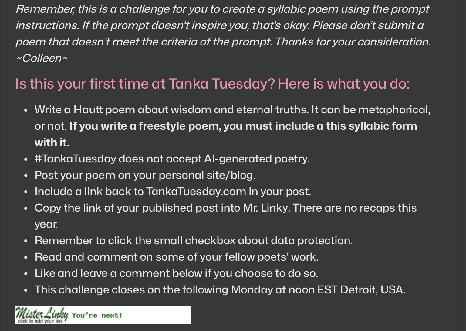 #TankaTuesday Poetry Challenge No. 57, The Hautt, 3/24/26
