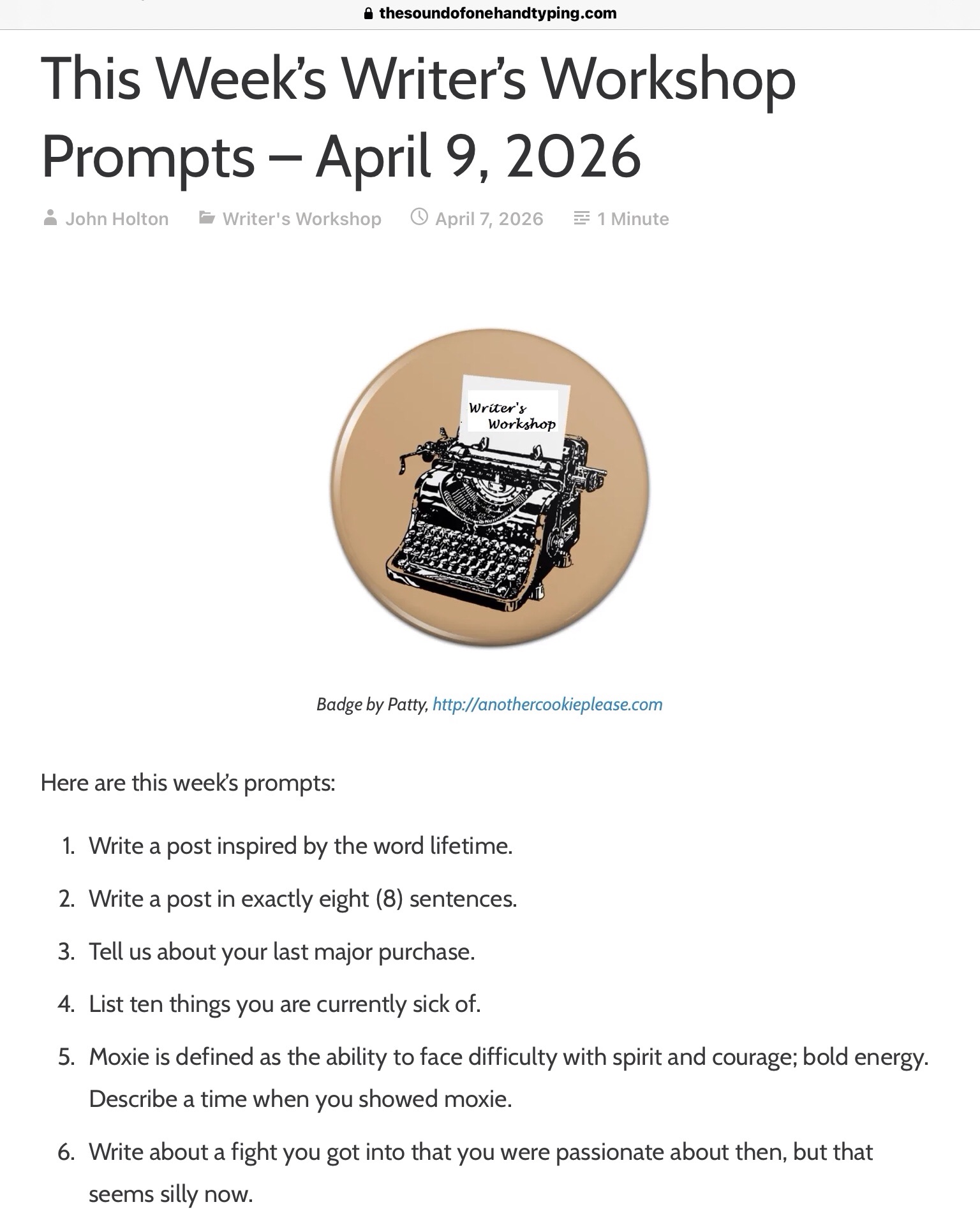 This Week’s Writer’s Workshop Prompts – April 9, 2026