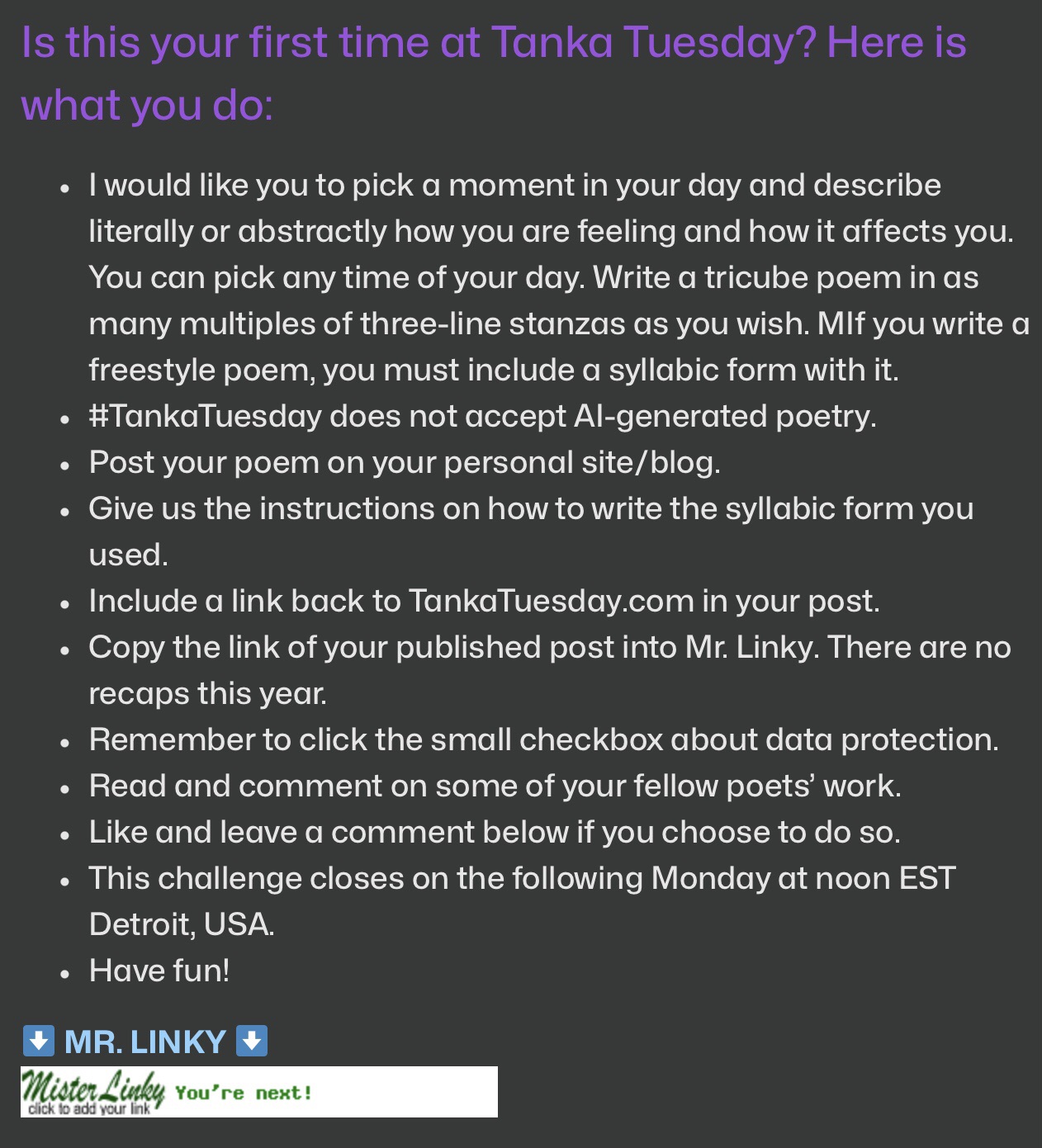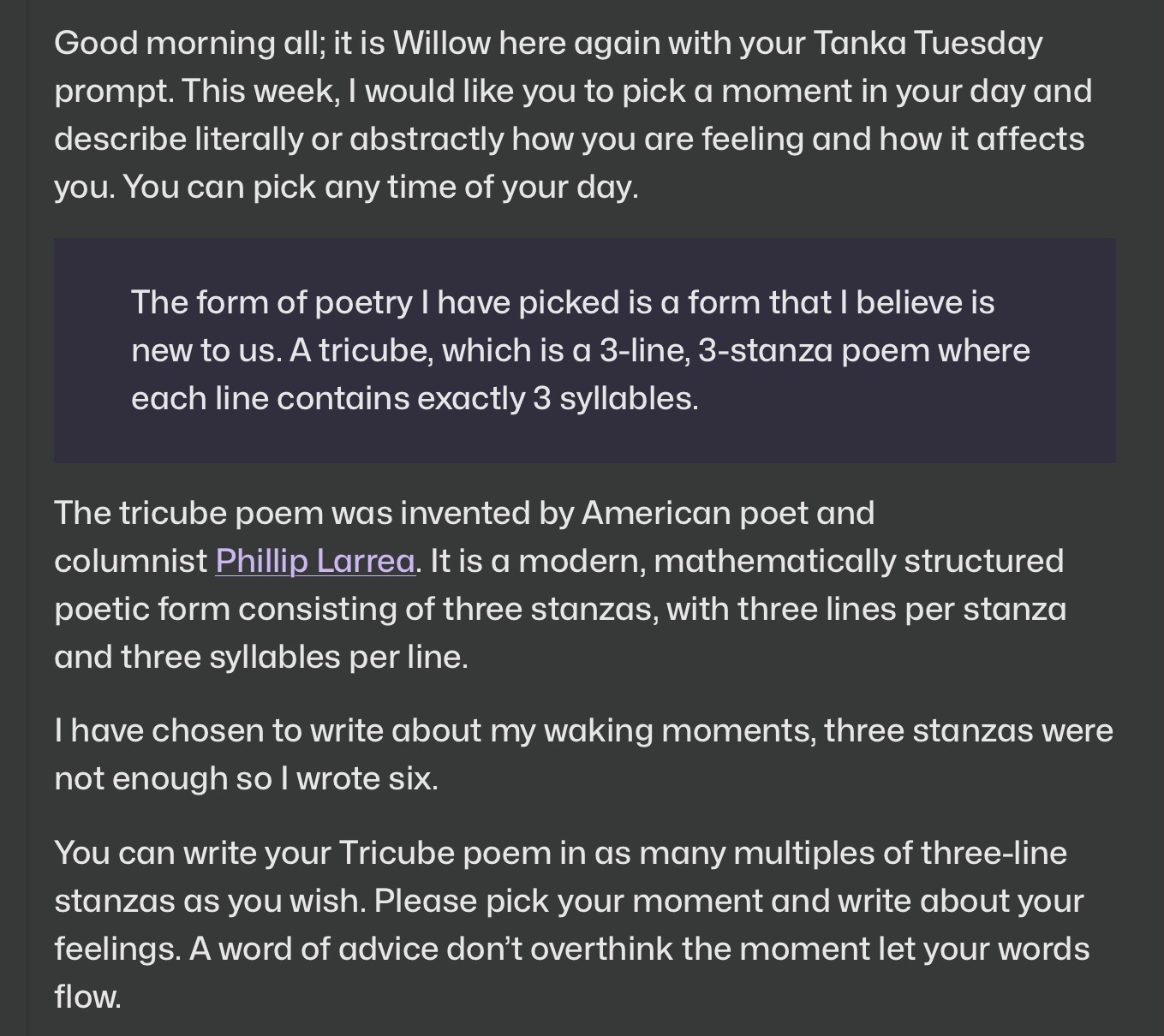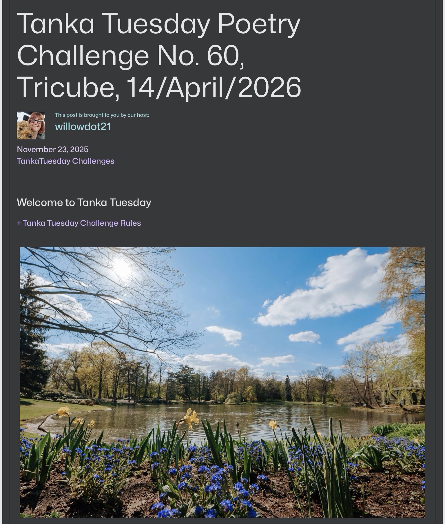 Tanka Tuesday Poetry Challenge No. 60, Tricube, 14/April/2026