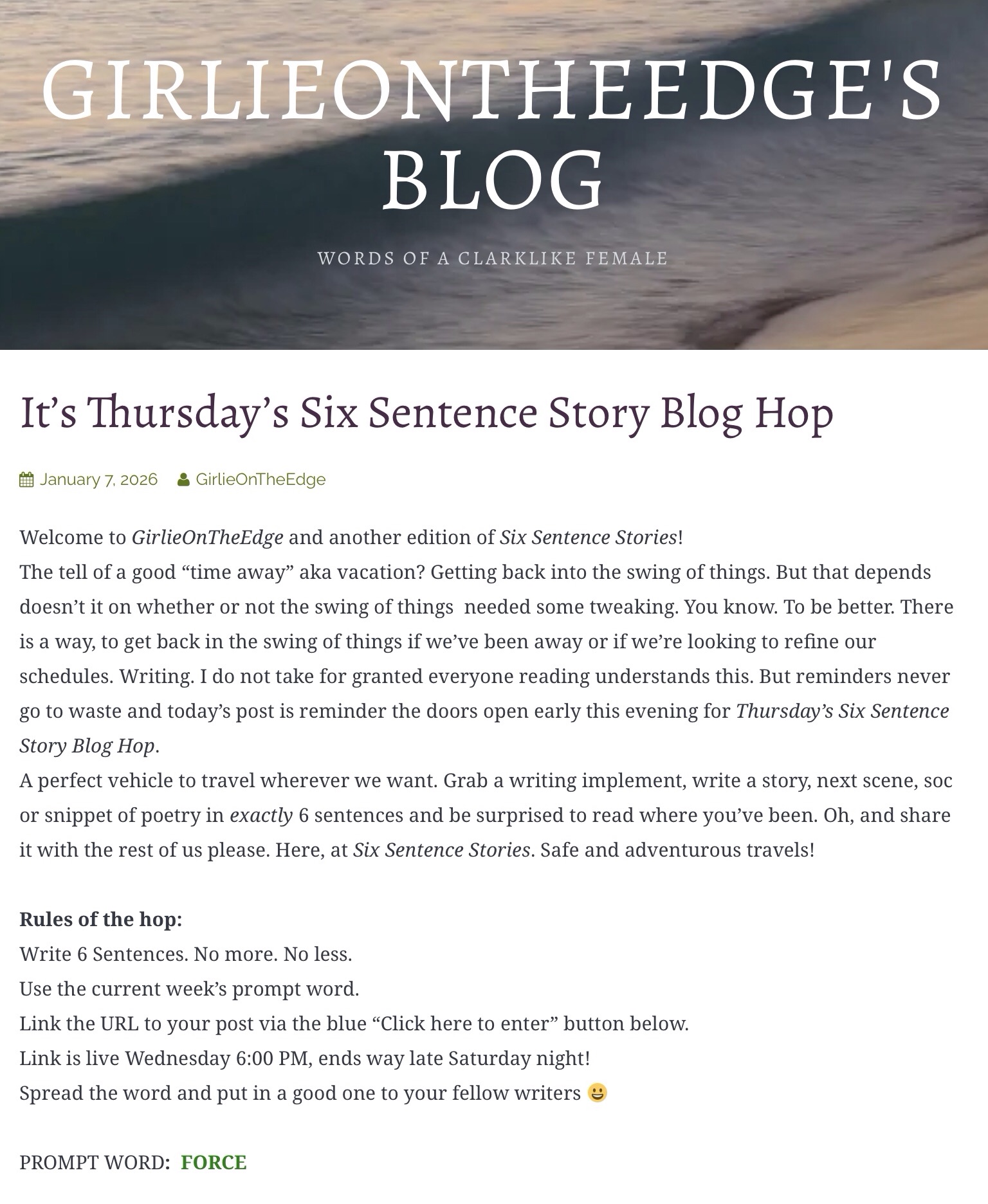 It’s Thursday’s Six Sentence Story Blog Hop